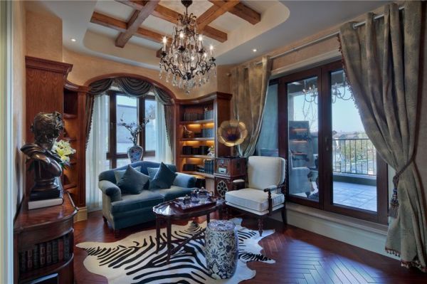 美国人喜欢有历史感的物品,在美式别墅装修中通常喜欢使用大量的石材、木饰装饰,比如说对于墙面的处理一般都喜欢用墙裙、护墙板、肌理墙等作为装饰,地面则喜欢使用仿古砖,在加上各种仿古的装饰品,使得美式客厅既有文化感又不失自在随意。由于别墅空间较大,接待客厅和娱乐空间相对较多。当我们划分空间时,我们应该区分移动和静态区域,它们不应该互相干扰。